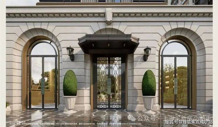 首先,项目西侧人行主入口大门,采用经典的拱券序列符号,以浅色石材、咖色金属与玻璃的精致搭配,营造出复古奢华的归家仪式!