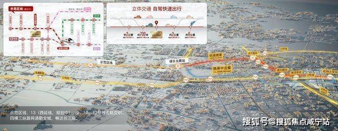 中交凤启虹桥的区位,堪称“天选之子”。它距虹桥枢纽直线仅7公里,通过“四横三纵”路网(崧泽高架、嘉闵高架、京沪高速、沪常高速),自驾15分钟直达虹桥商务区,30分钟覆盖前滩、张江;地铁17号线徐乐北路站(直线约1公里)与在建示范区线徐乐北路站(直线约1.6公里)构成双轨交通,未来1站直达华漕、2站至虹桥枢纽,对经常出差或参展的商务人士而言,通勤效率堪比“私家车库”。更关键的是,它位于虹桥国际开放枢纽北拓带的核心腹地,与徐泾、华漕组成大虹桥“黄金三角”,随着华为研发中心、网易总部等产业导入,区域价值潜力如火箭般蹿升。