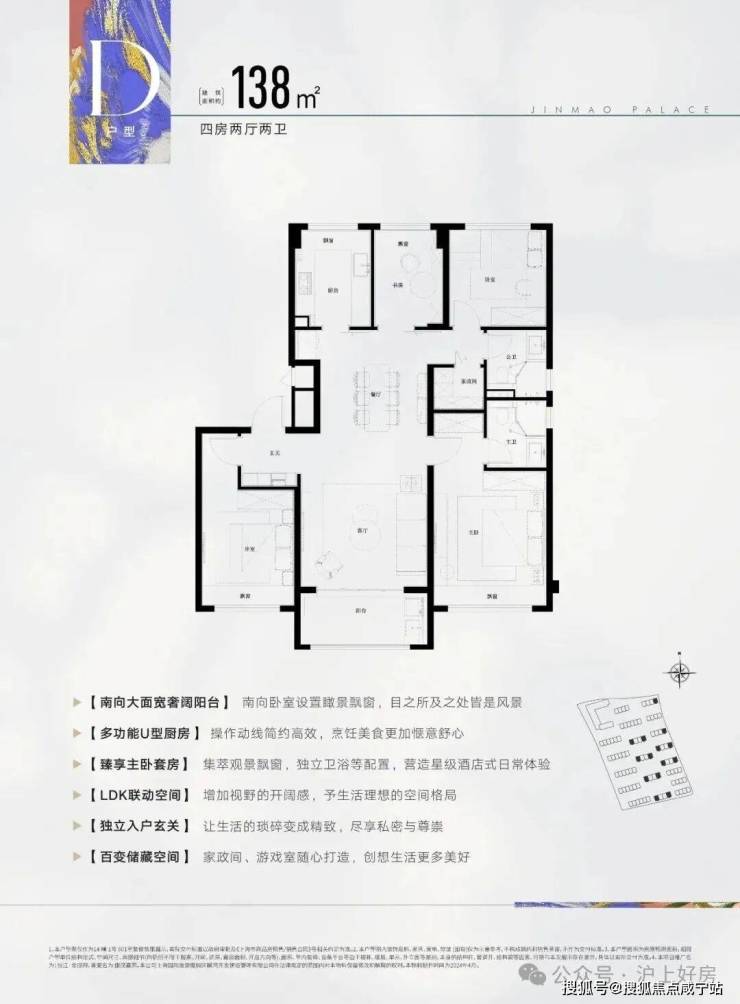 建面约138㎡的边套四房,则在尺度感上进一步加码,打造空间奢适的大户型