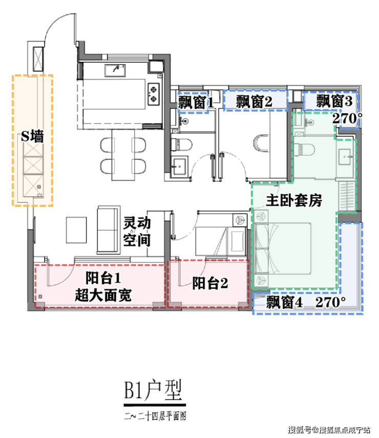 1、2-4阳台+全屋飘窗,超高实得率,空间利用率MAX!