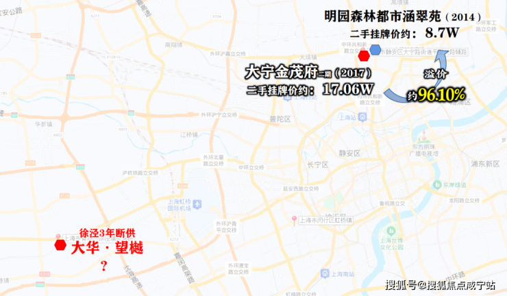 以产品力著称的大宁金茂府,比同地段次新小区挂牌价足足高出了约96.10%!
