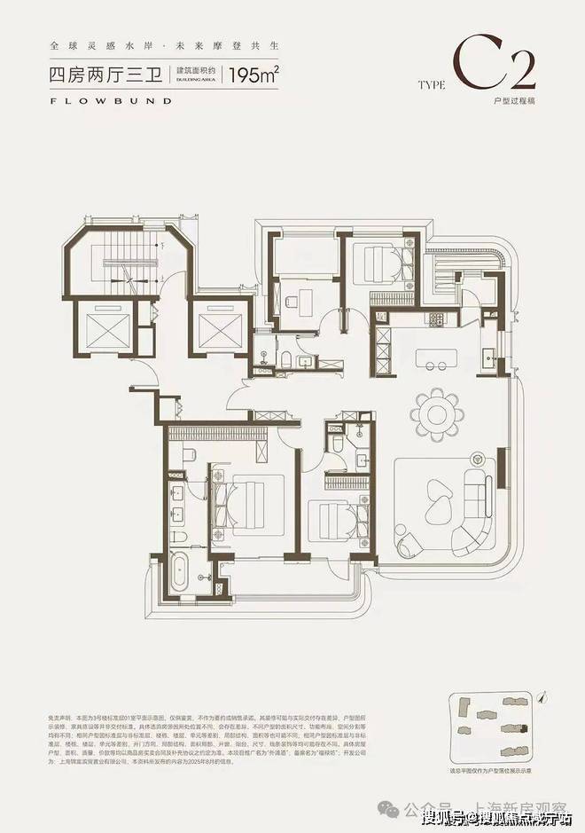建面约195㎡4房样板间展示