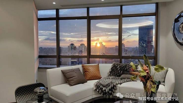 客厅270°采光面,配置弧形沙发,窗前可见上海经典三件套;