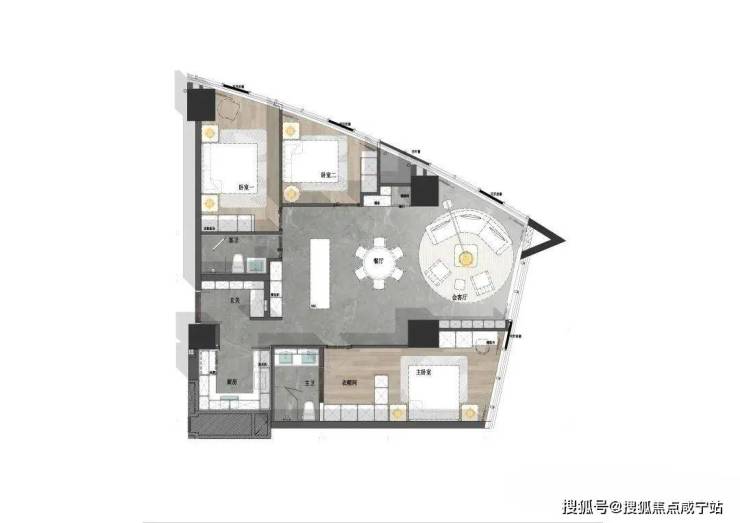 户内楼面高度不一致,错开之处有楼梯联系。但没有完全分为两层。(适合大面积住宅,小户型会显得局促)