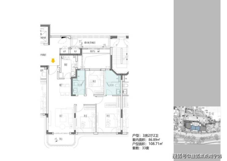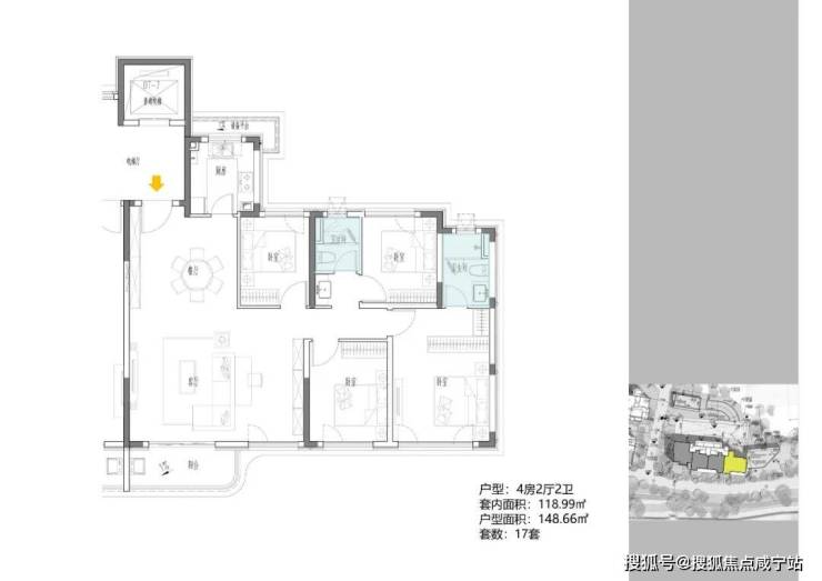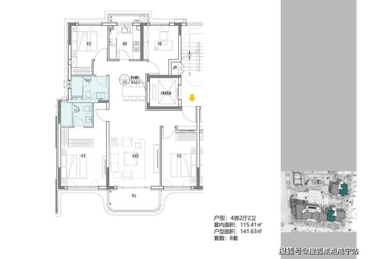 B地块容积率2.94,只有一栋小高层,共67套房源,产品建面约108-148㎡。