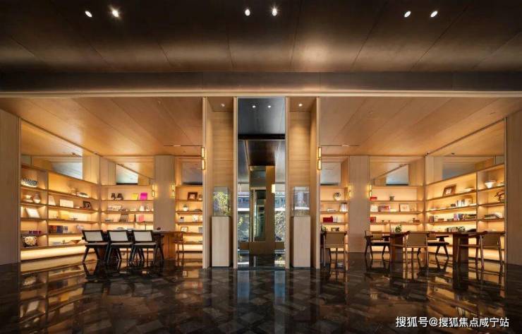 公区方面,西入口正对一棵挺拔的泰山油松、灵动的水景、与艺术感的屋檐共同构成一座现代语境下的“玲珑宝盒”,营造出从喧闹到宁静的情绪转换。