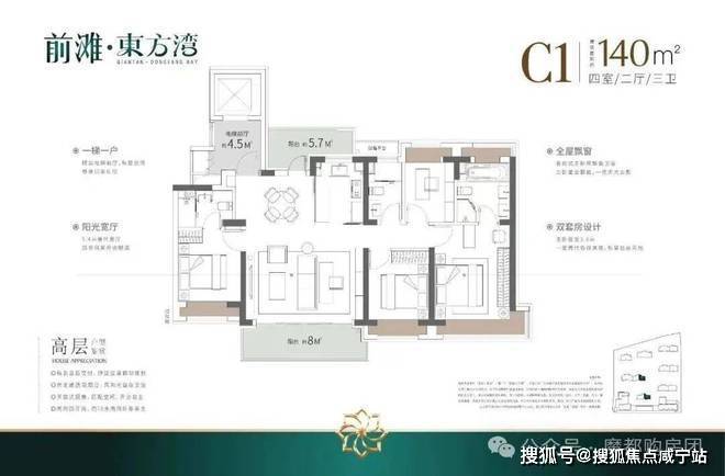 ④产品升级:全铝板立面+带恒温泳池会所+全部(类)1梯1户+标准层高3.1-3.15米,适配高端改善人群居住.