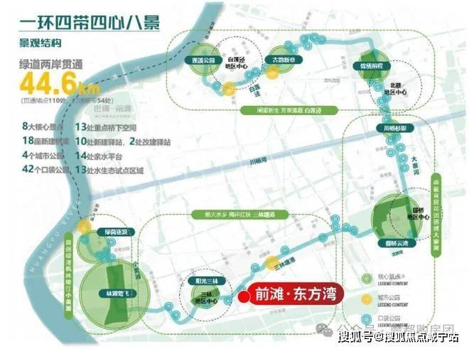 世博水环将与黄浦江滨江步道形成“滨水+滨江”的空间闭环,构建“一环四心四带八景”景观结构,构建集生态、文化、民生于一体的城市滨水生活圈.