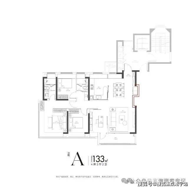 三代同堂:128㎡四房或170㎡叠墅,独立老人房+多功能空间,满足“长幼有序”的居住需求。