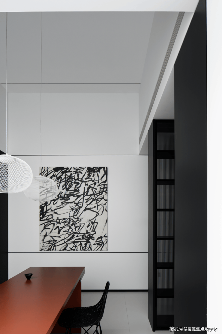 整个空间以静、雅、柔传达着家的精气神儿,黑白的交错,棱角的柔和,都是家的本色,都是极简的象征。