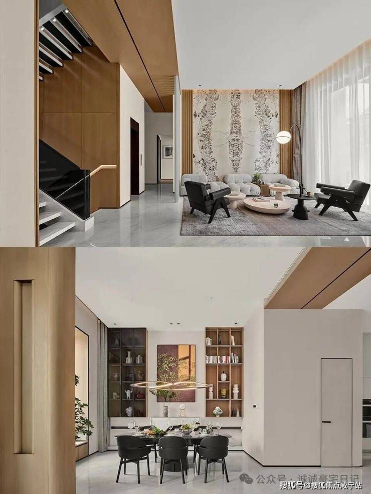 2、公区走道:顶面石膏板吊顶,刷涂料;地面铺石材或铺木地板;墙面贴格莱美牌墙纸或局部木饰面、不锈钢、艺术漆等饰面。