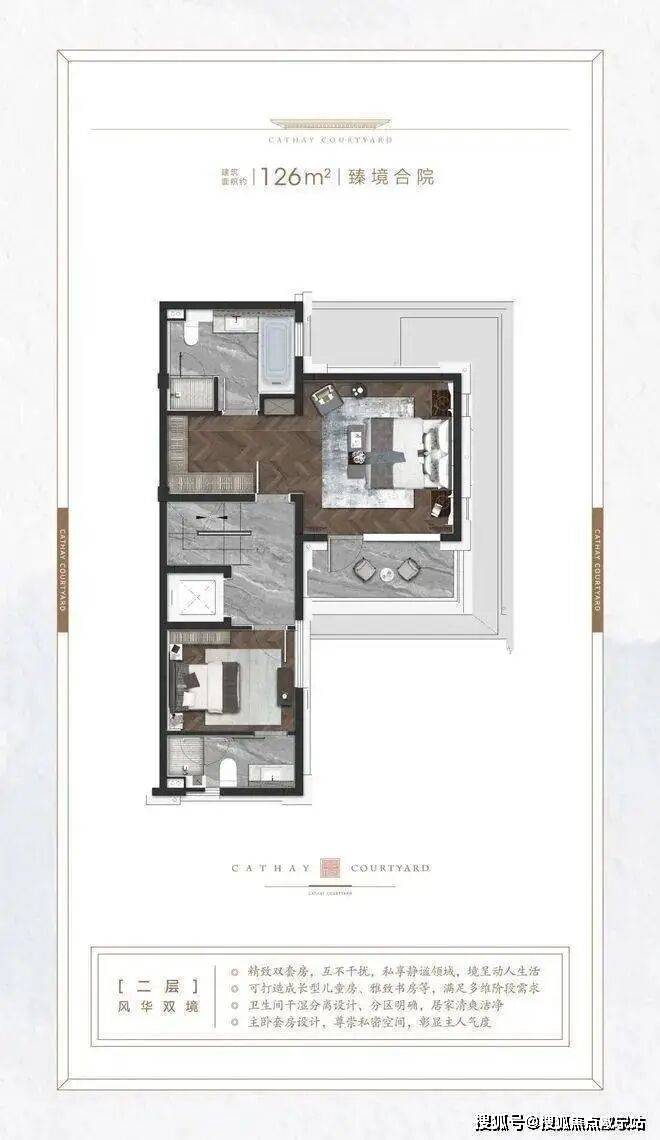 泰禾海上院子售楼处电话☎:400-880-0703(预约热线)✔✔✔二层至三层豪华套间,功能齐全,每一间卧室都拥有足够尺度,配置独立浴室、衣帽间等功能分区,房间外延景观露台,满足了高阶人物对于空间感的需求。即使二孩家庭成员也各有各的空间,互不影响。【建筑面积约188㎡颐景合院】