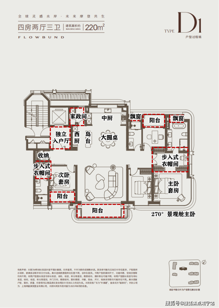 主卧创新采用270°景观舱式设计,结合超大面宽阳台,形成了连续四个开间的奢华南向景观面。