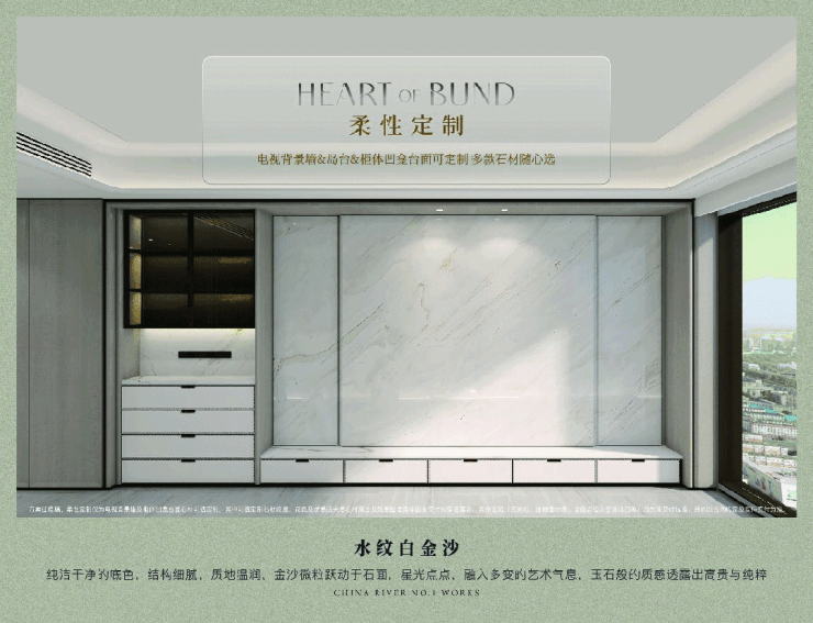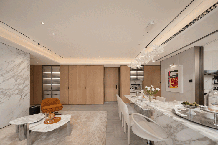 灵动空间通过框筒结构与X空间定制,让家能够伴随家庭共同成长,从容应对未来的无限可能;柔性焕肤携手知名艺术家,从入户门把手到艺术门牌,从多款珍稀石材背景墙到岛台,实现专属定制的艺术升华。