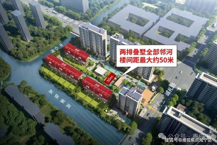 地块整体方正,北侧仅规划两栋高层,将大部分空间留给叠墅;不仅让叠墅最大楼间距达约50米,保障了采光与私密性,还依托双水系资源,让两排叠墅均邻河而建,其中一幢更是双面邻河,景观优势拉满,进一步放大了叠墅的居住舒适度。