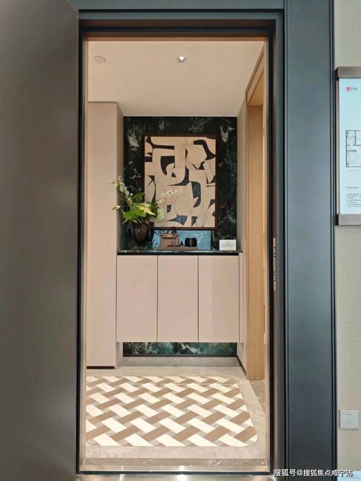 玄关处还涉及了光彩夺目的奢石,和海派风十足的地面拼花,将业主归家的仪式感和尊崇感展现的淋漓尽致!