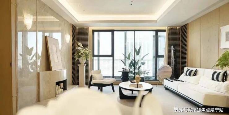 该户型打造了约4.8米面宽阳台,阳光和煦,带来的十足的尺度感。