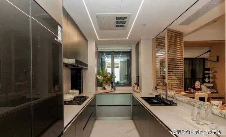 U型厨房设计,交付餐边柜。厨房配备9件套: