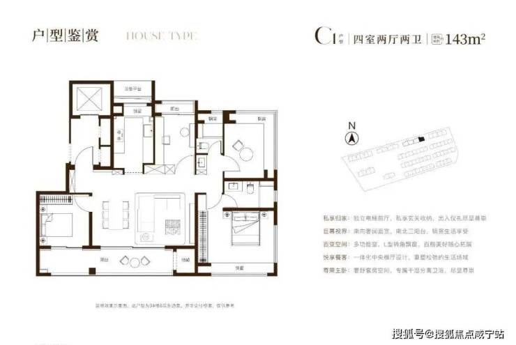 建面约143㎡四房,豪宅级的空间感