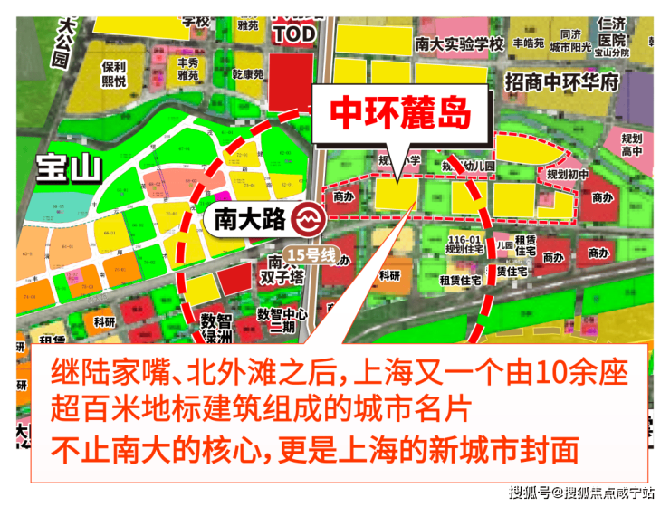 以南大路为核心,周边约100米范围内多座超100米,最高约250米的地标建筑。这里不仅是南大的产城融合中心,更是继陆家嘴、北外滩、前滩以及徐汇滨江的下一个地标建筑群。