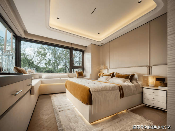 结合局部弧形玻璃与超大窗墙比,真正实现了“引景入室”,让家变成公园的观景台,重新定义了居住的视野界限。