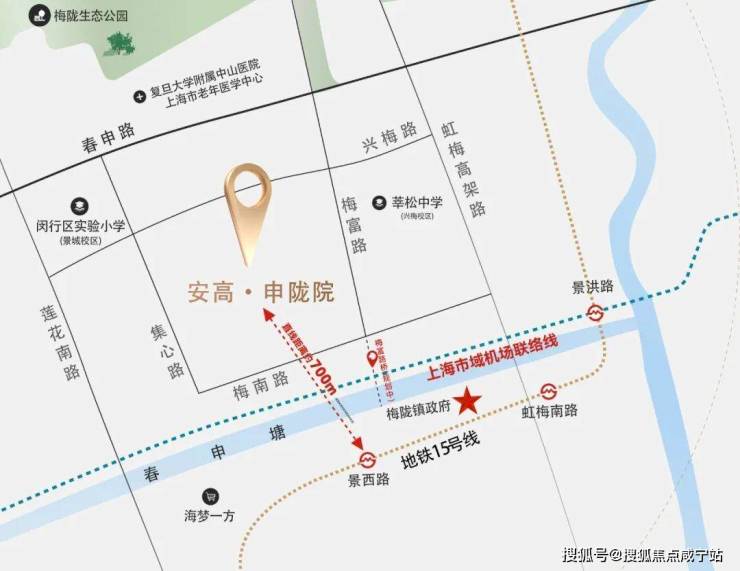 优越的地理位置:安高申陇院位于梅陇核心位置,距离中环仅约2公里,周边交通网络发达,紧邻15号线景西路站和虹梅路高架,无论是前往市中心还是其他区域,都能轻松抵达,让您在享受城市繁华的同时,也能拥有便捷的出行体验。