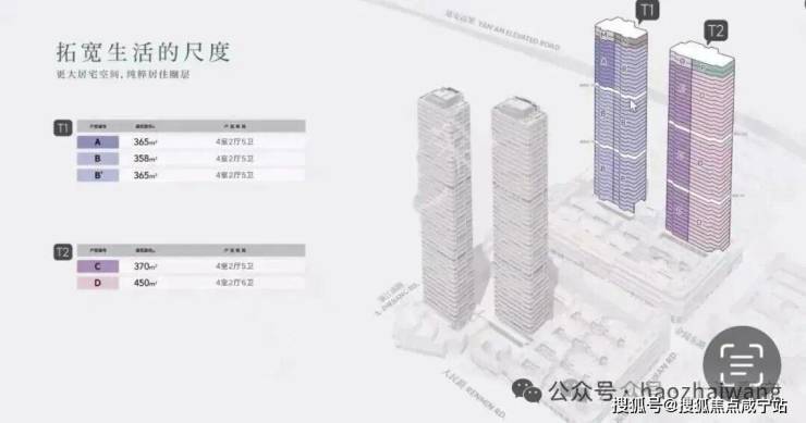 项目首开南地块T3、T4的2幢150米超高层地标大宅,首期主力户型为270㎡/288㎡/338㎡的以及少量608/640㎡的城市封面级天际大平层。