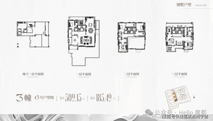 D1地块待售的12套别墅即将入市,面积为建面约410-540㎡。