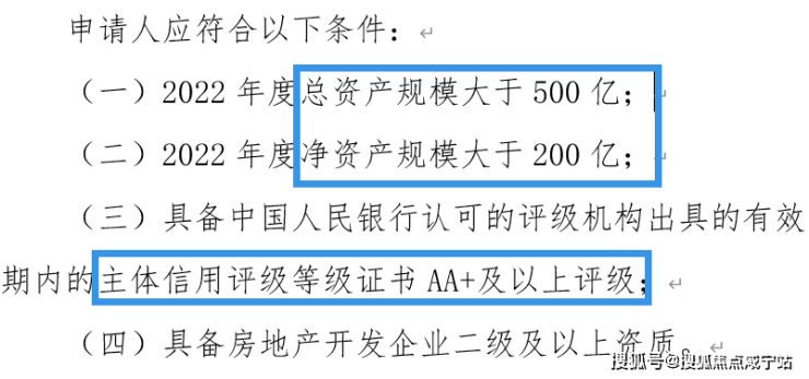 在意向方遴选条件上,除了常规的对企业的总资产规模、净资产规模、主体信用,房地产开发资质等做了要求之外: