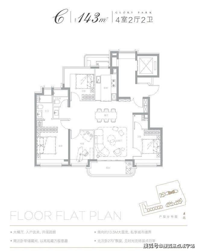 以已经开放样板间的建面约143㎡户型为例: