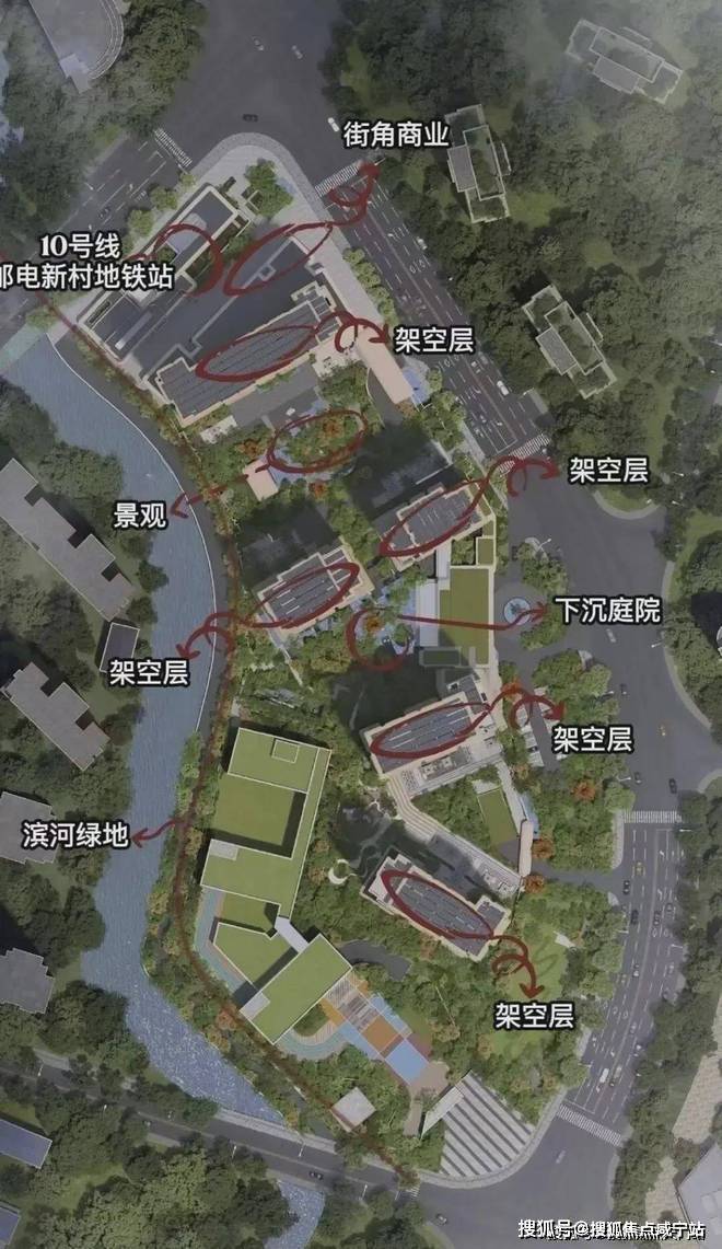 回过来看金茂·璞元,它与瑞虹新城融为一体共享配套,同时距离地铁站更近(就在10号线邮电新村站站口)通勤效率直接拉满,更有沙泾港天然河道与地块平行,顶豪标配的滨水而居氛围跃然纸上!