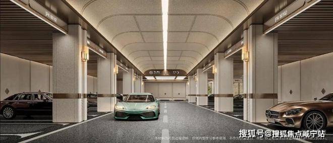 七、两层车库全精装修,各项指标都做超配:比如75%都是2.5m* 5.5m的大车位,出入口宽度做到8米,高出正常宽度1米;主车道做到6米,高出正常宽度1米;坡度12°15°,小于正常标准3°。在功能上,有上海首发的地下环岛式中央车站,设置社区洗车点,地下光厅和采光天井相融合,下行车道也设置了主题陶瓷壁画等。