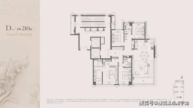 八、中建玖上琅宸全户型层高3.1米起,190㎡达3.3米,210㎡和280㎡更是高达3.5米,边套户型都配备南北270°全景飘窗,280㎡户型更实现超12米的无柱采光面。特别指出每户还在地下免费配送了一个储藏空间。