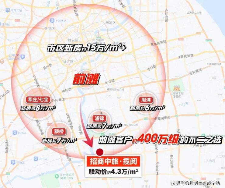 而以前滩为中心,周边生活圈内只有招商中旅·揽阅是约400万级的新房,其余均是起码约700万起的置业地。