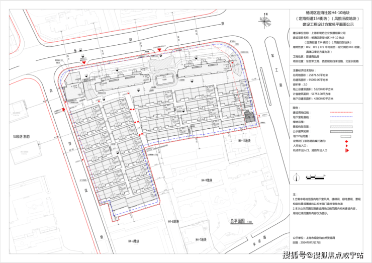 根据设计方案显示,整个项目总建筑面积约9.5万方,容积率2.0。包括3栋19-20F的高层,26栋2F的风貌别墅及配套设施组成。