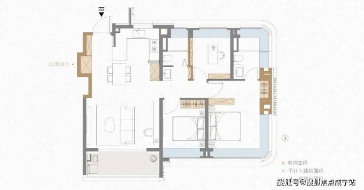 这个户型有独立电梯入户,保障私密性的同时,还多了一个独立都电梯厅,相当于多了一个小厅,可以用来规划摆放收纳柜,变相提高了“得房率”。