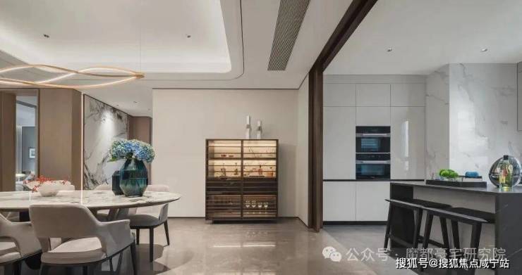 室内设计,秉承摩登东方的理念,设计以人、生活为中心,从空间本体和情感层面都回归生活,270度环幕采光,开放式会客厅设计,兼具尺度感与功能性。