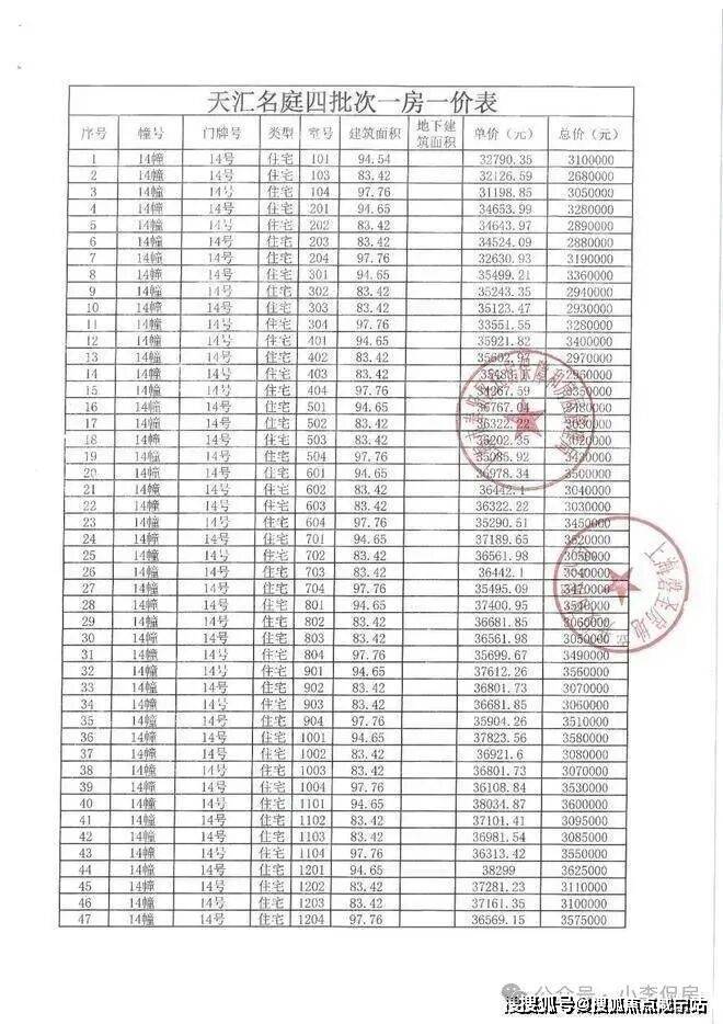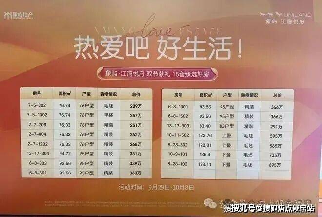 象屿江湾悦府一房一价表: