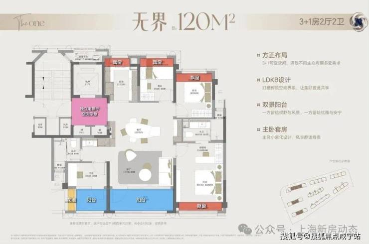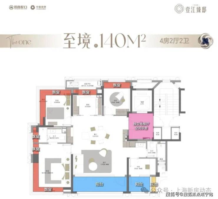 双阳台+多飘窗+花池+独立电梯厅将户型实得率提升到90%+。