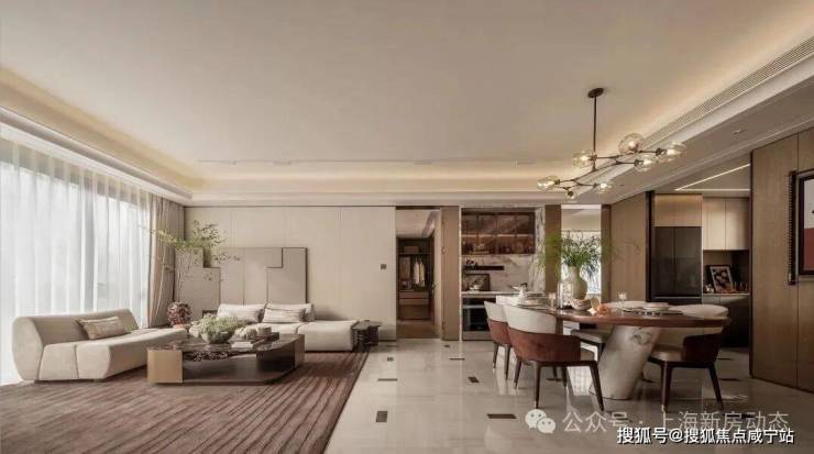 客厅面宽达到约5.8米,客餐厅与南阳台结合形成约50㎡超大会客空间,尺度感堪比常规170㎡+户型。