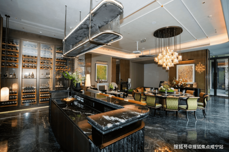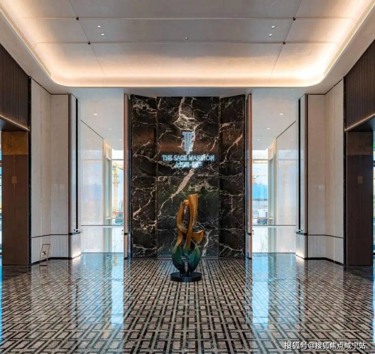 HWCD 团队以国际视野扎根江南文化,用奢石铺陈出显性的高端质感,空间里随处可见的玉石元素,呼应“玉以载德”的中式底蕴,水纹图形点缀其间。