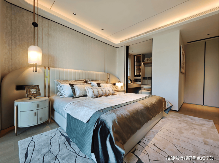 逸庐偏偏不走寻常路,没有盲目追随当下流行风格。走进高层的样板间里,扑面而来的就是素雅——浅色的影木饰面,浅色的地板,浅灰色的皮革软包,几乎没有任何空间是跳色的,审美非常高级。