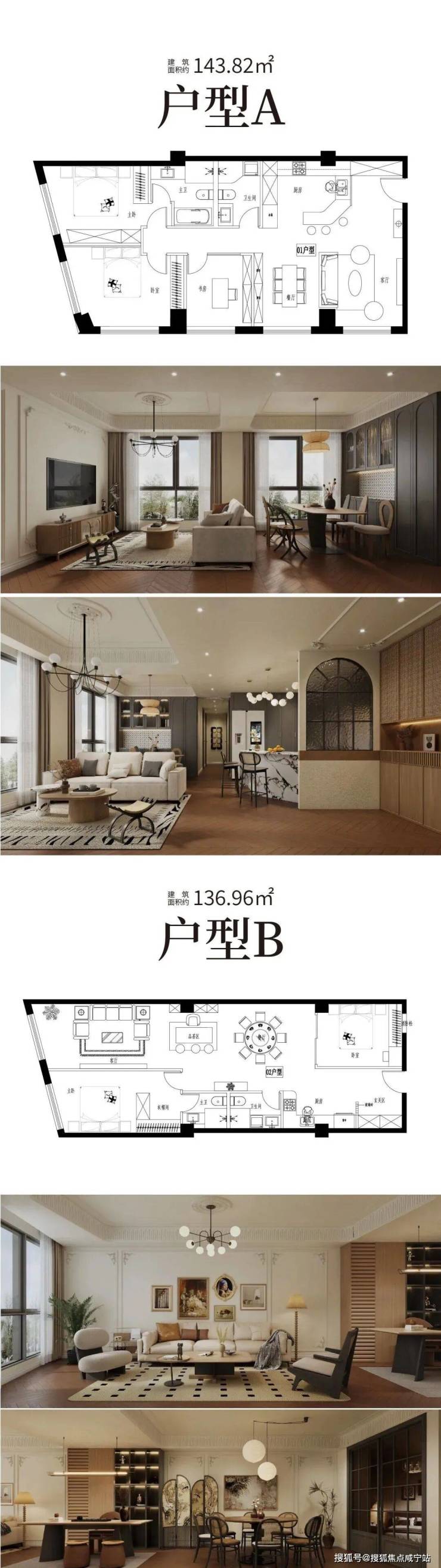 【户型】:136平两室两厅两卫,餐客厅分区,设计品茶区,L型开放式厨房,全屋落地窗;