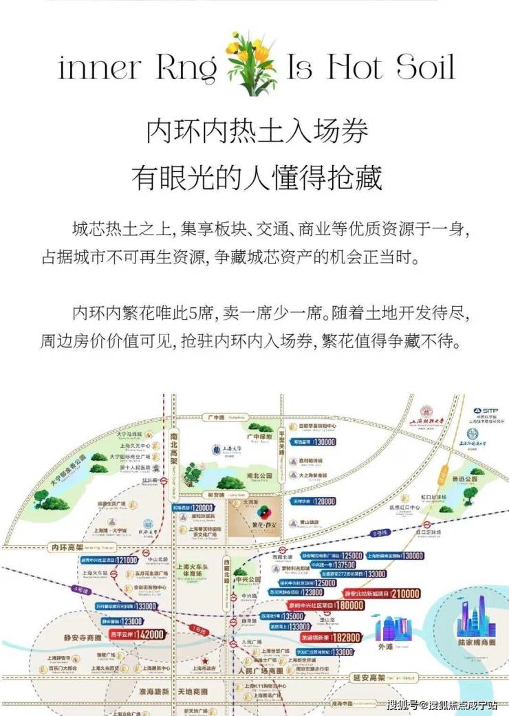 【交通】:190米8号线西藏北路,1公里1号线中山北路,3号线虹口足球场1.3公里,自驾1公里直达内环高架、南北高架-南京西路商圈:新天地/人民广场