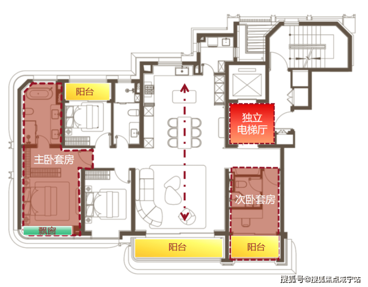 建面约220㎡户型位于5号楼楼王位置,这是一个非常出乎人意料的产品。