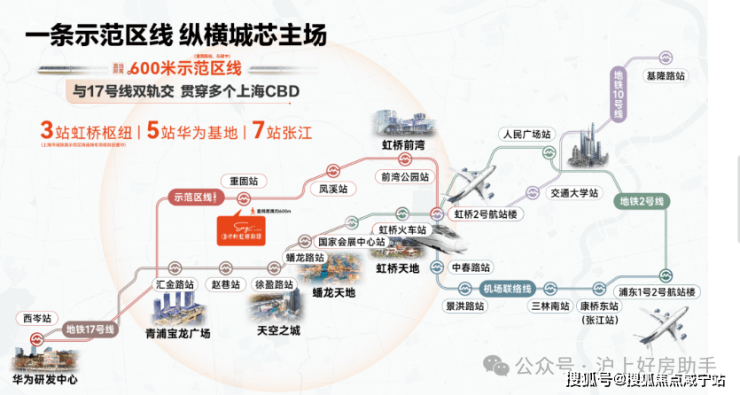 ② 示范区线350-600米,2026年3站虹桥,通勤价值确定