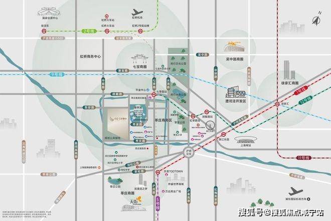 中企云启春申的区位优势堪称“天时地利”。项目坐落于莘庄商务区核心地带,这里是闵行主城规划中明确的“城市副中心”,更是上海西南门户的交通枢纽。距离地铁12号线七莘路站仅约700米,步行10分钟即可抵达,未来嘉闵线(2027年开通)也将在此交汇,形成“双轨交”格局。对于在漕河泾、徐家汇、虹桥商务区工作的白领而言,4站直达漕河泾、9站抵达徐汇滨江的通勤效率,堪称“时间管理大师”的福音。