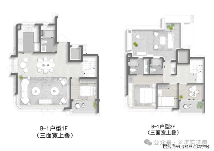 再来说项目的叠墅产品:约9.5米南向三面宽、独门独户、约6.1米地下室挑高(下叠)、超大露台(上叠),可以说,将墅居的尺度感和扩展空间拉满!