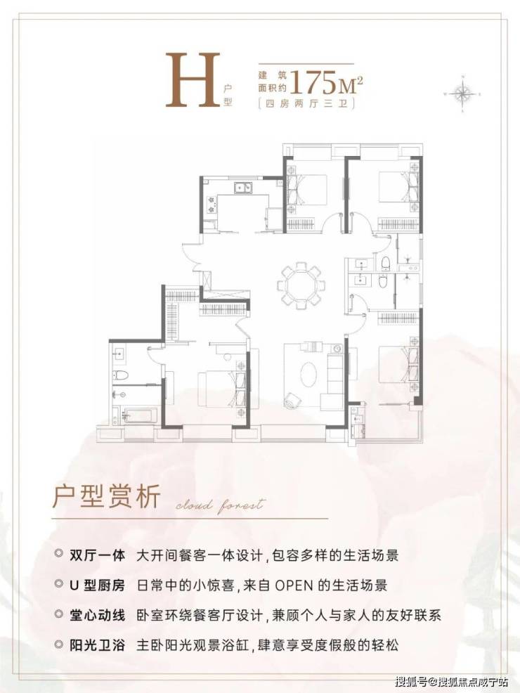 建面约175㎡4房3卫,几乎是上海改善的终点户型。