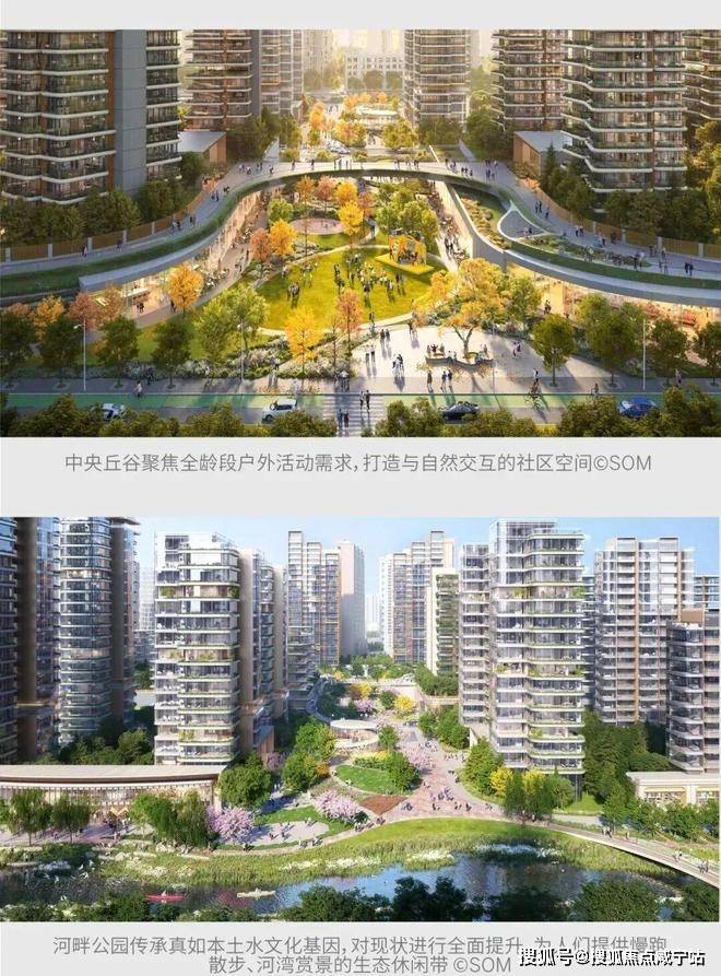 规划以“悦”、“赏”、“游”、“聚”四大主题为脉络,相应打造了仓廪市集,中央丘谷,河畔公园和桥水门户四大场所,并通过贯穿全域的社区漫步景观带,将这些高品质公共空间有机串联起来,打造成为城绿共生、全龄友好、活力精致的大型高品质社区。